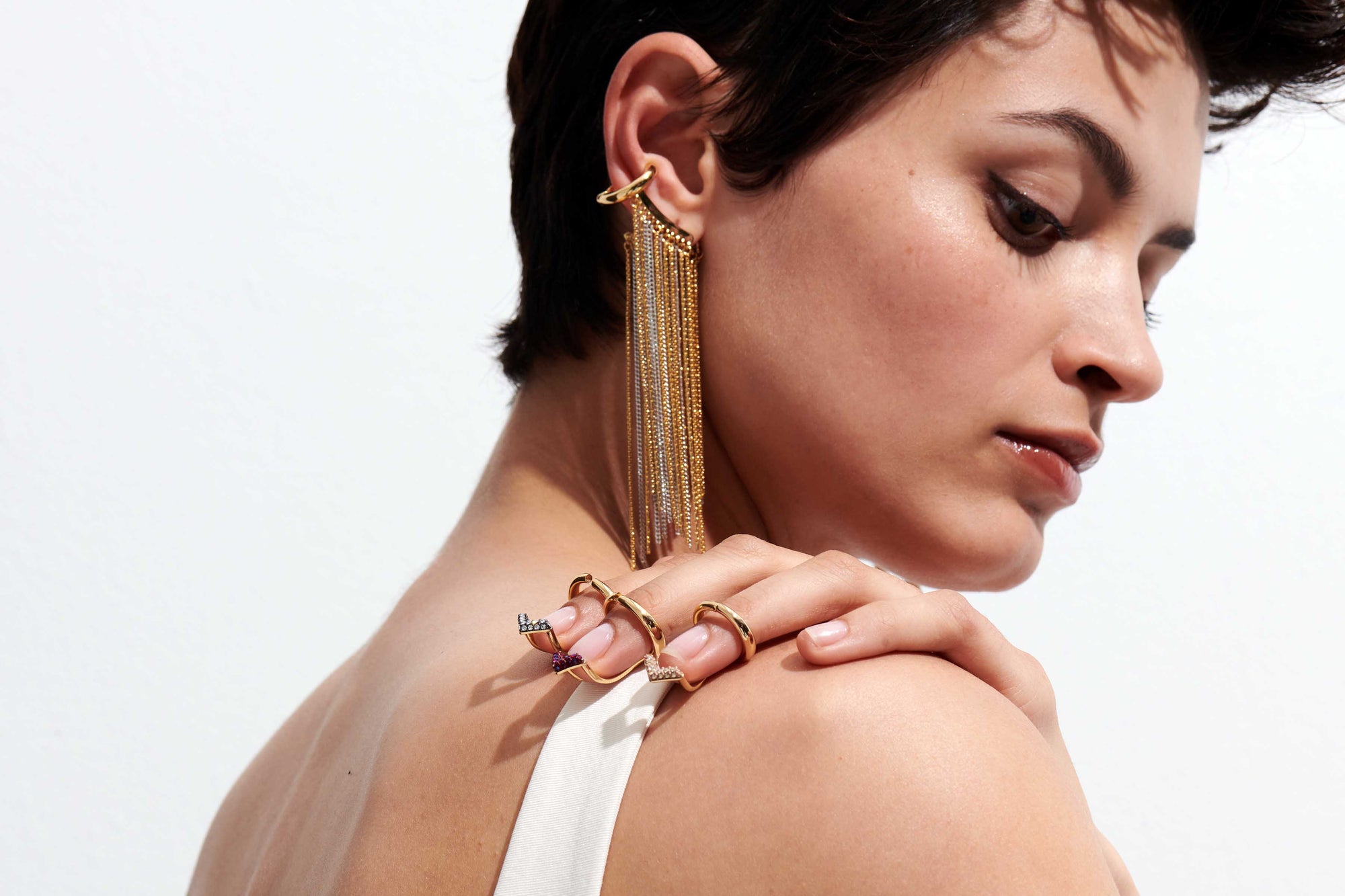 With its pavé accents, the Amina Nail Crown makes any mani shine. This unique accessory is the perfect way to add a touch of glam to any outfit. With a hinged ring, easily slide on to crown your nail with a comfort fit.