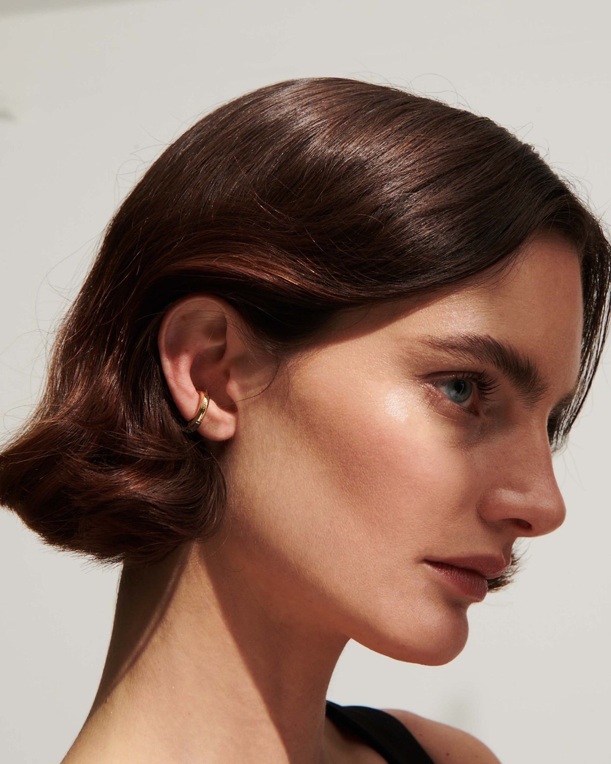 12k gold plated ear-cuff with radiant mini square cut crystals. Easy size that can take you from day to night, gold in front by day and crystals in front at night.