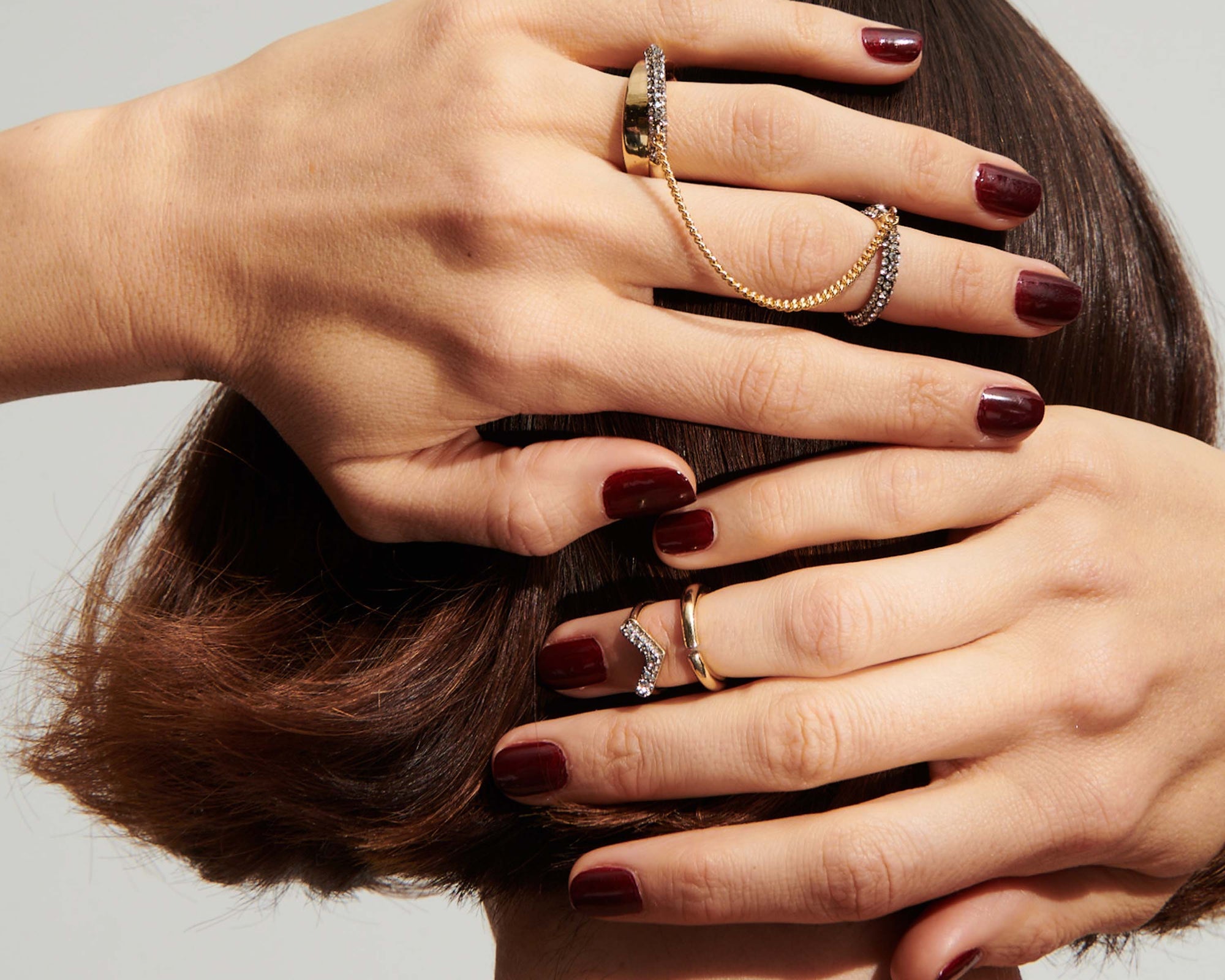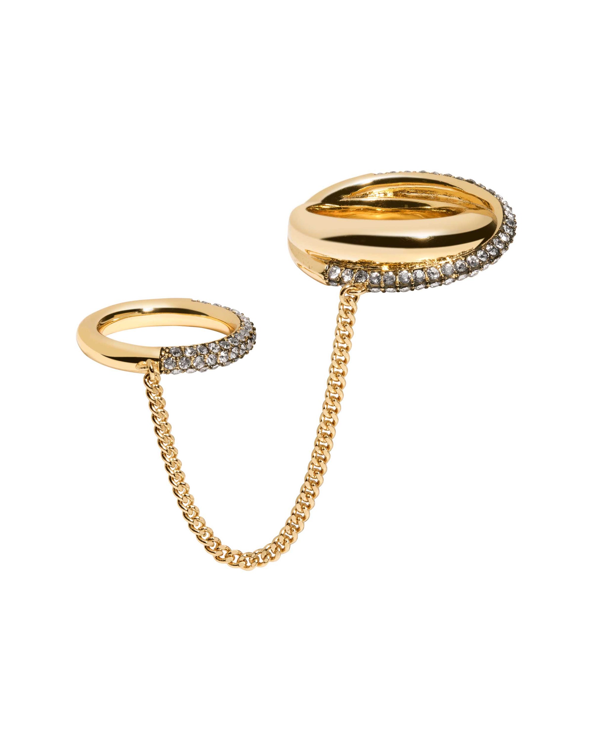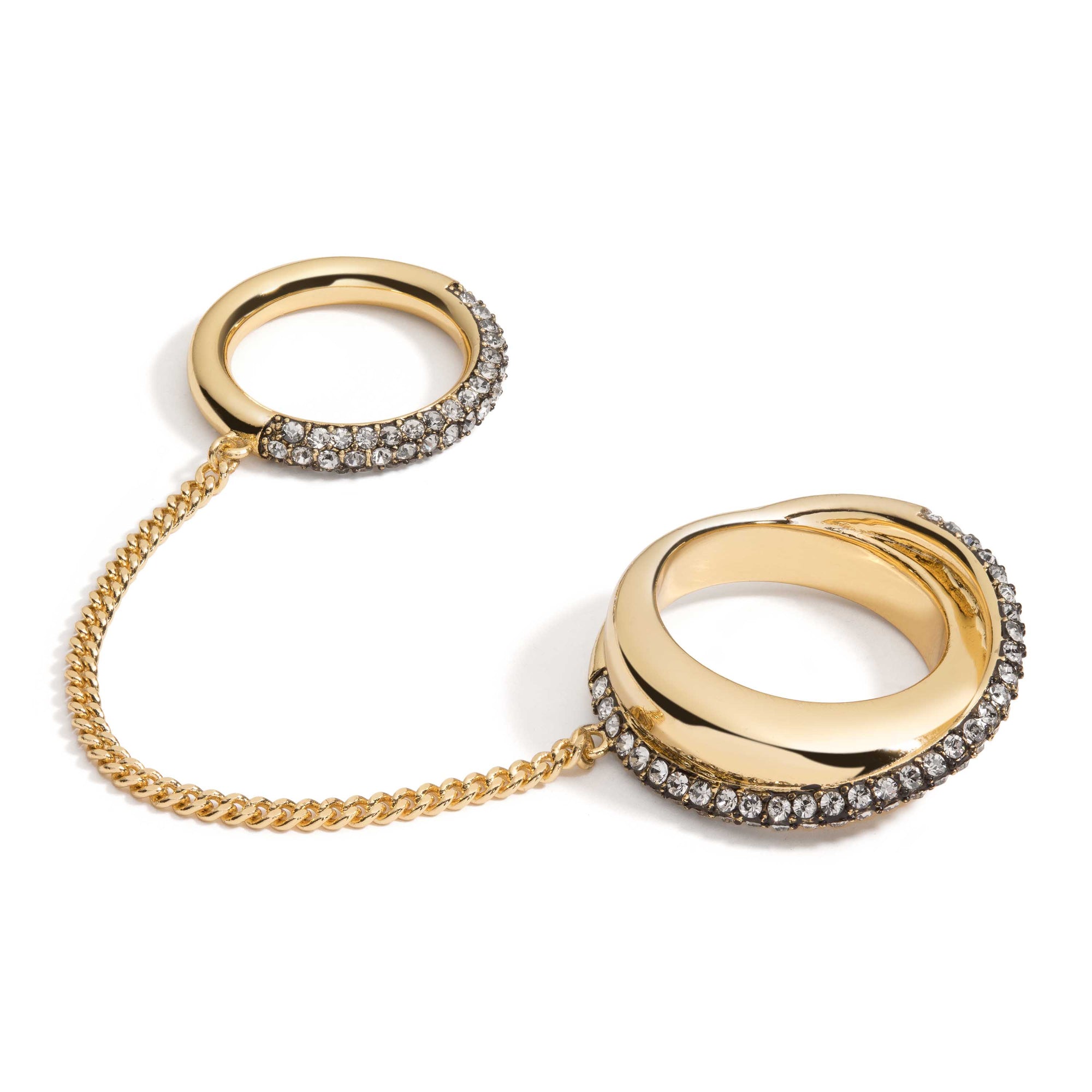 Your new favorite two-for-one ring with pavé stones for extra glimmer. This ring cuff features different size rings to play around with placement.