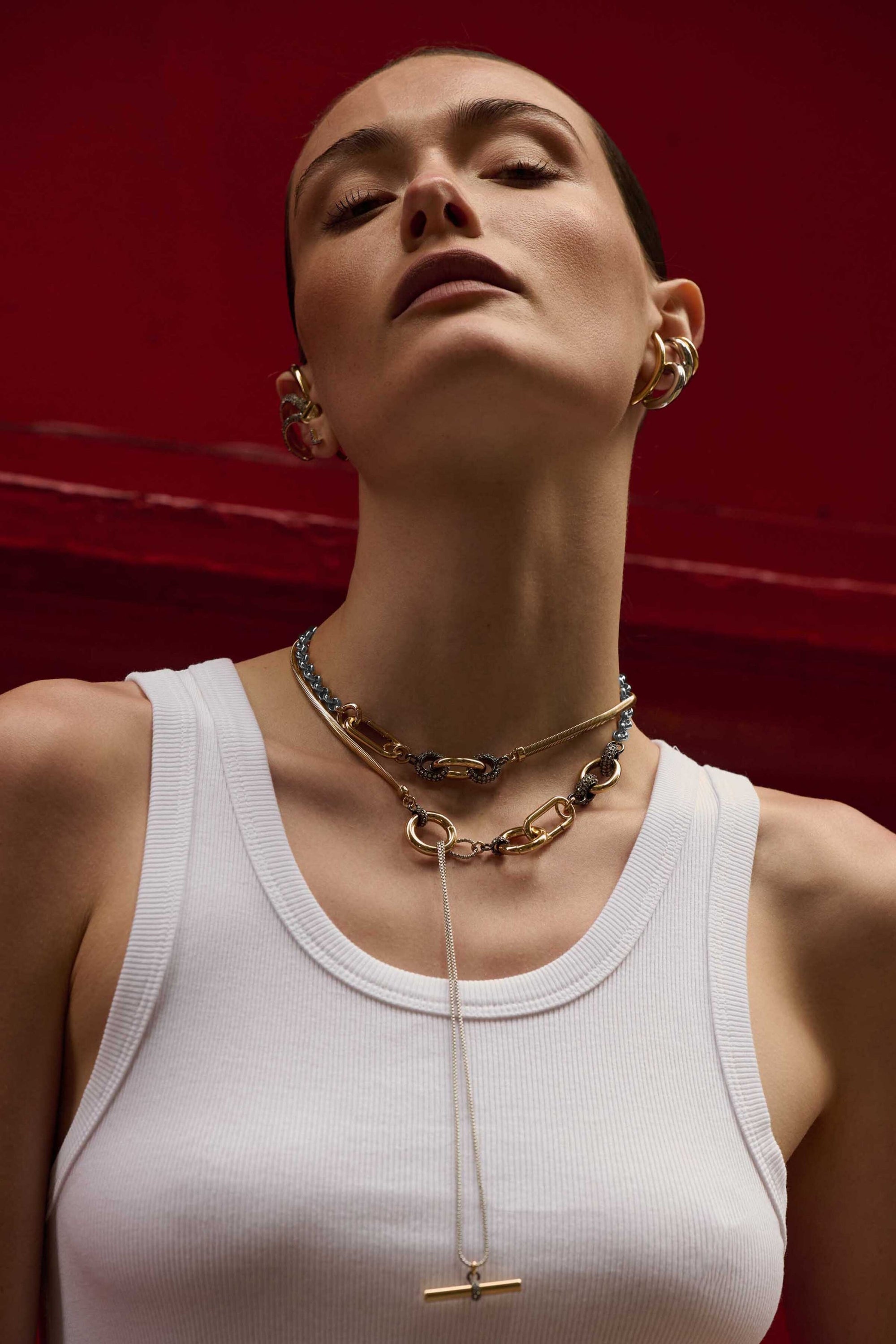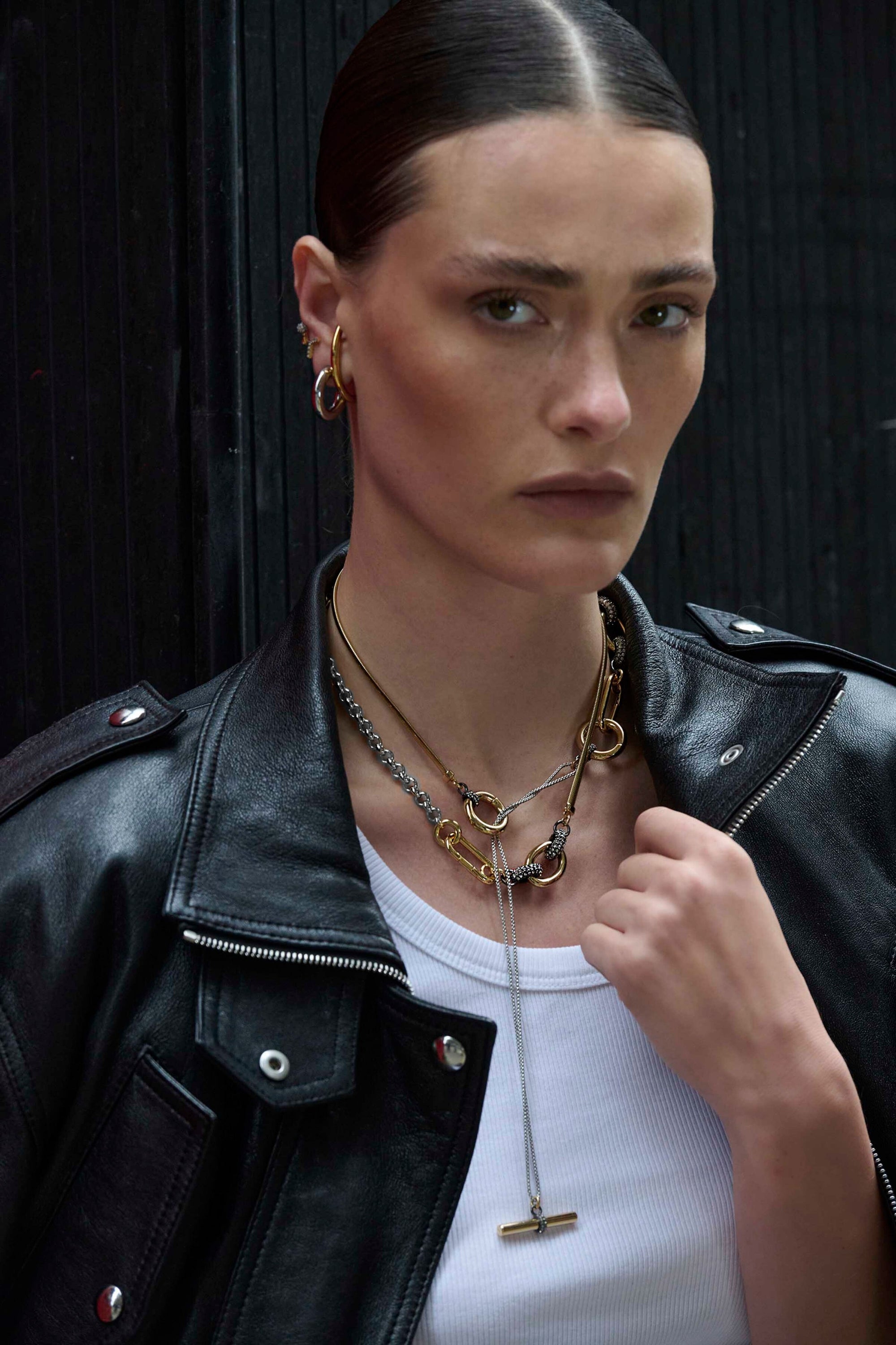 Convertible and adjustable, you make your own rules with this necklace. Wear it alone or layer up with more styles, the mixed metal Benson with micro pavé touches can be styled countless ways.