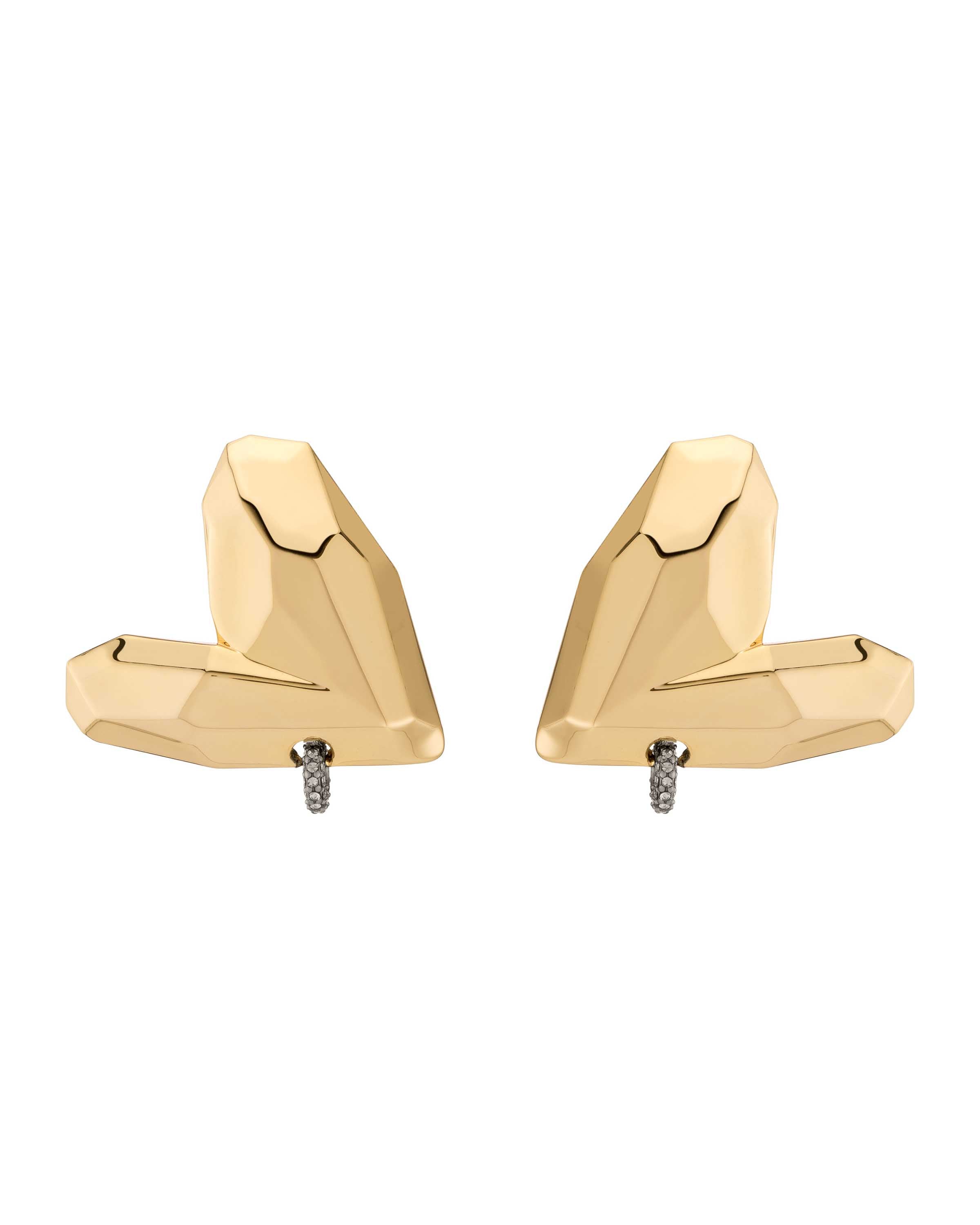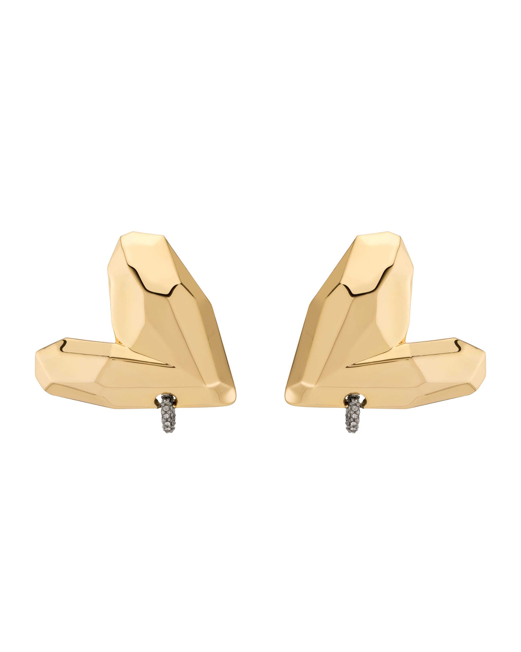With a multifaceted surface, you're bound to fall in love with these statement-makers. Pierced with a small pavé ring, you've never seen heart earrings like this.