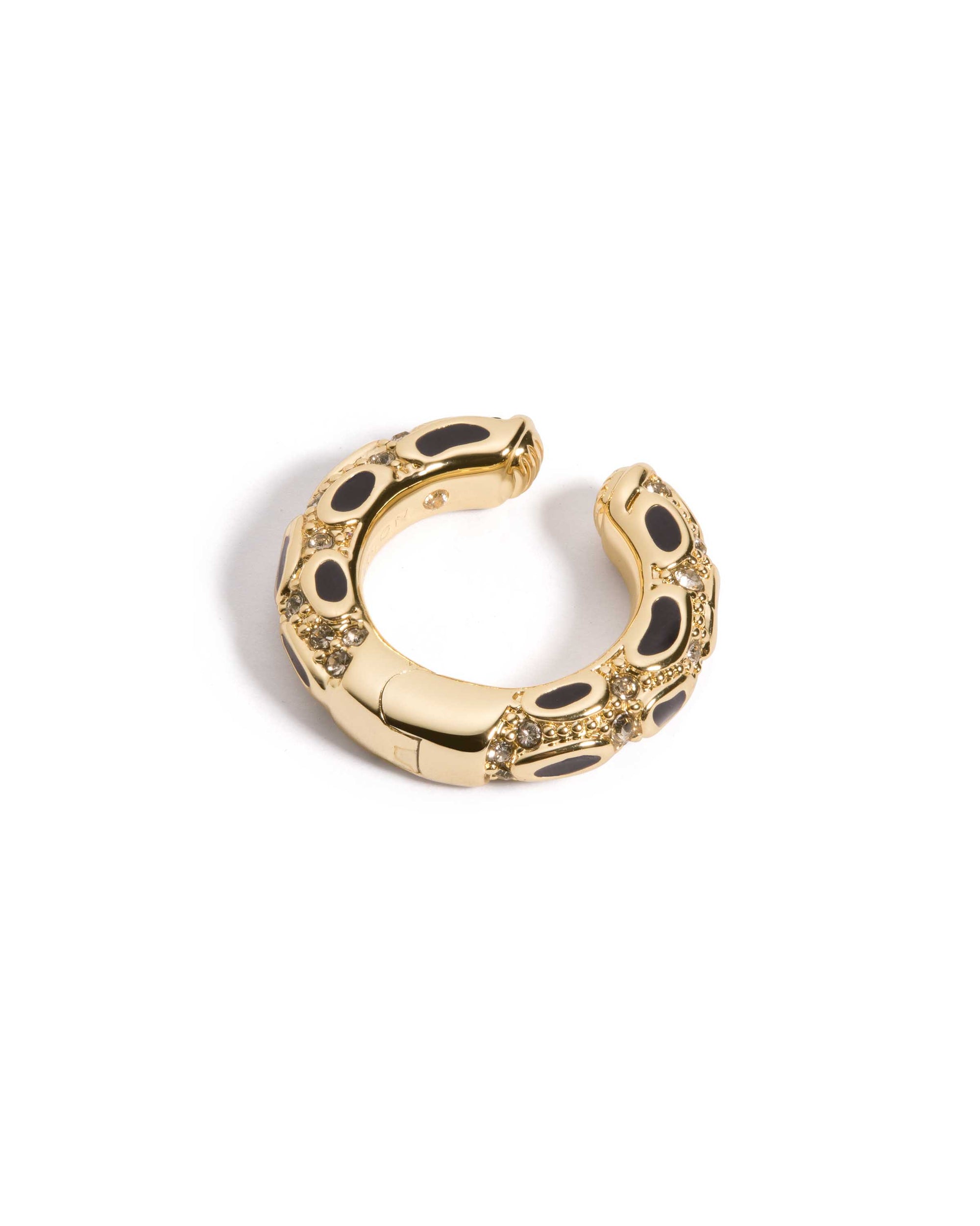 Animal print, all grown up. This set of two ear-cuffs with a special python pattern feature encrusted pavé crystals and black enamel. They're the perfect, fun last touch to any outfit.