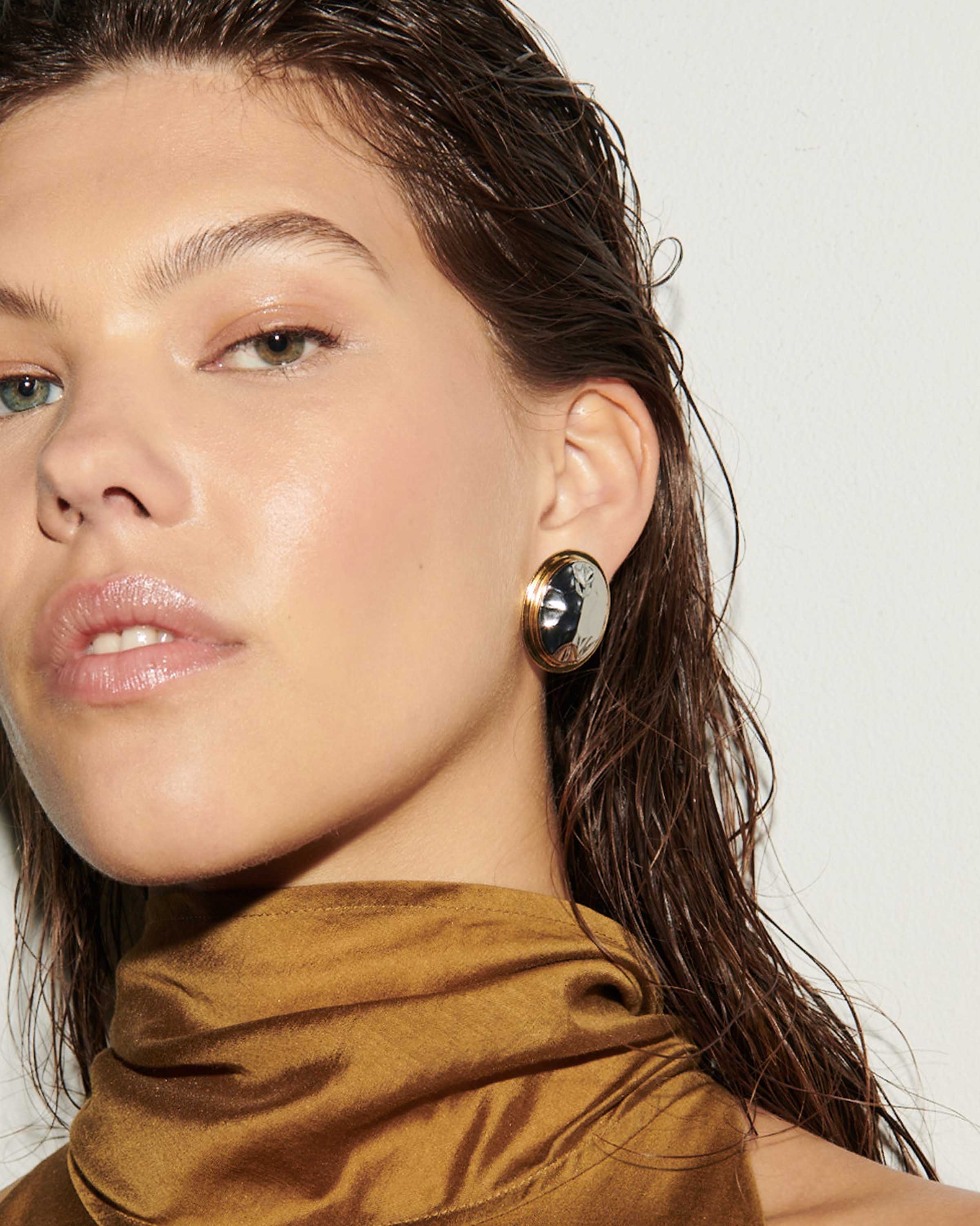 Mixing metals and texture, the Jelena oversized stud earrings are giving major main character vibes.