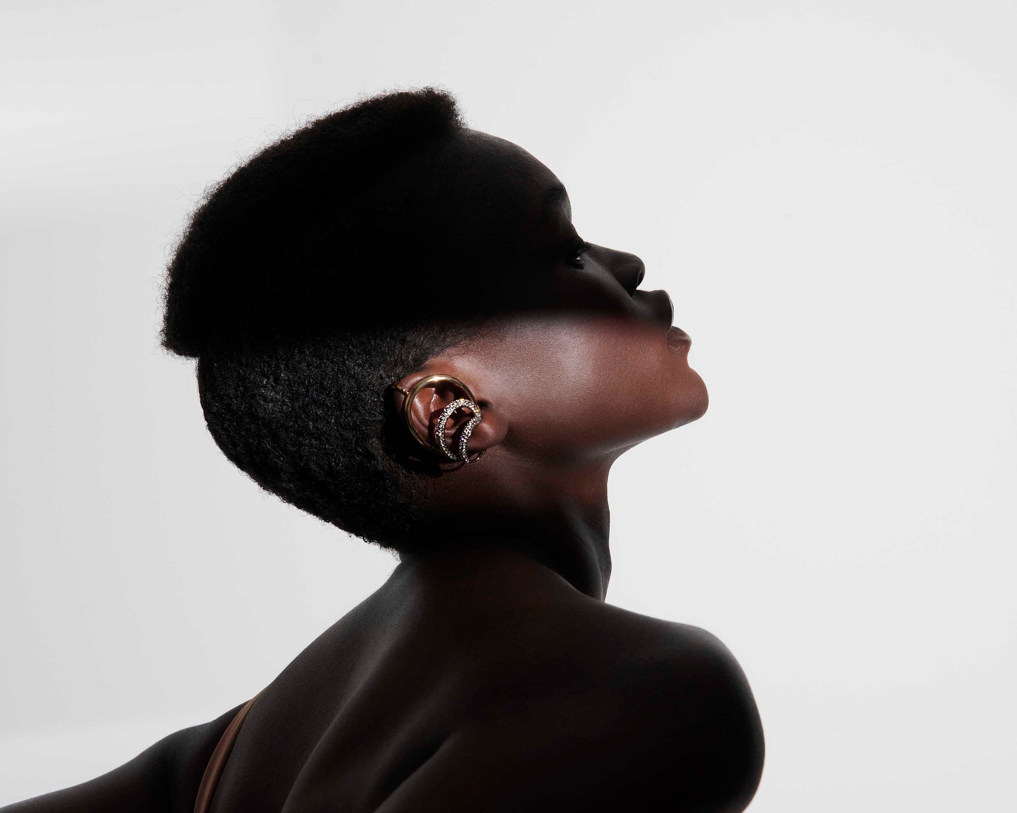 The crown jewel of your ear. This one of a kind ear cuff covers the top of the ear giving a caged effect, ensuring all eyes on you. No piercing required.