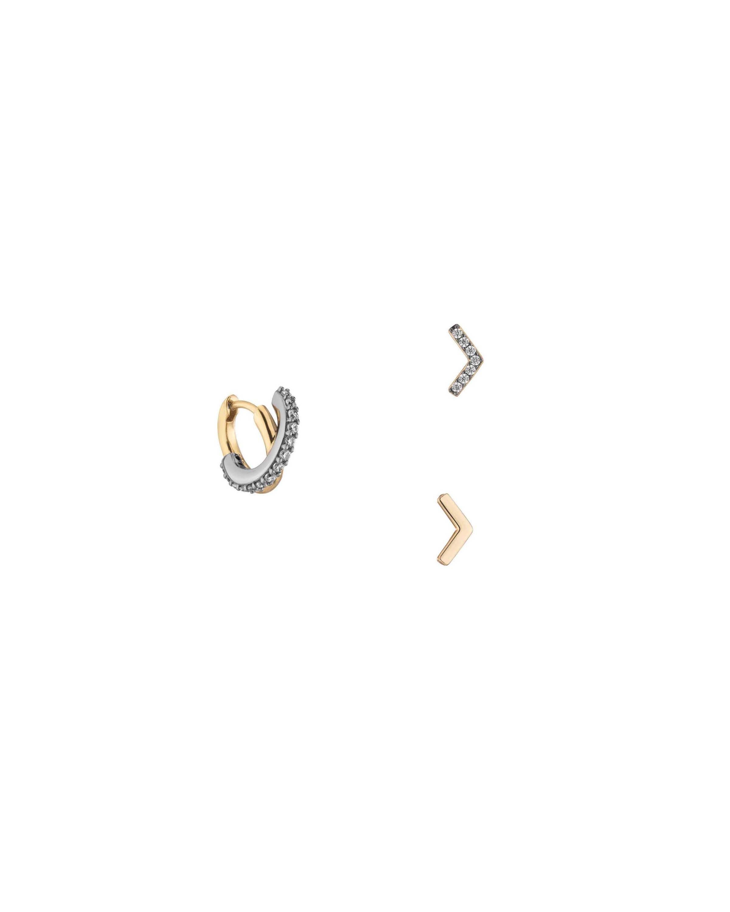 All crafted in sterling silver and 18k gold vermeil, this set is ideal for the ones with multiple piercings. Effortlessly elevate any ear stack by mixing and matching these styles.