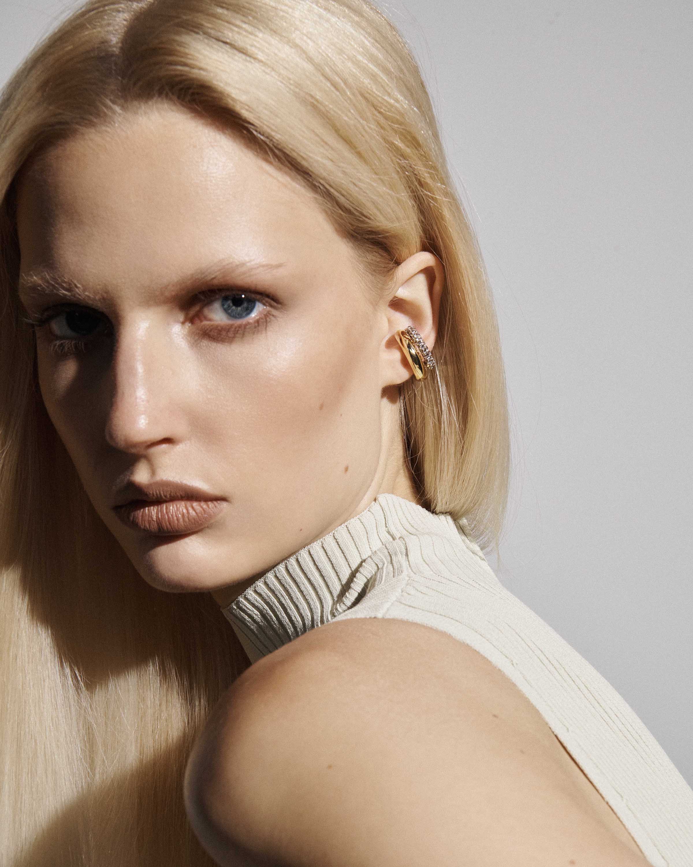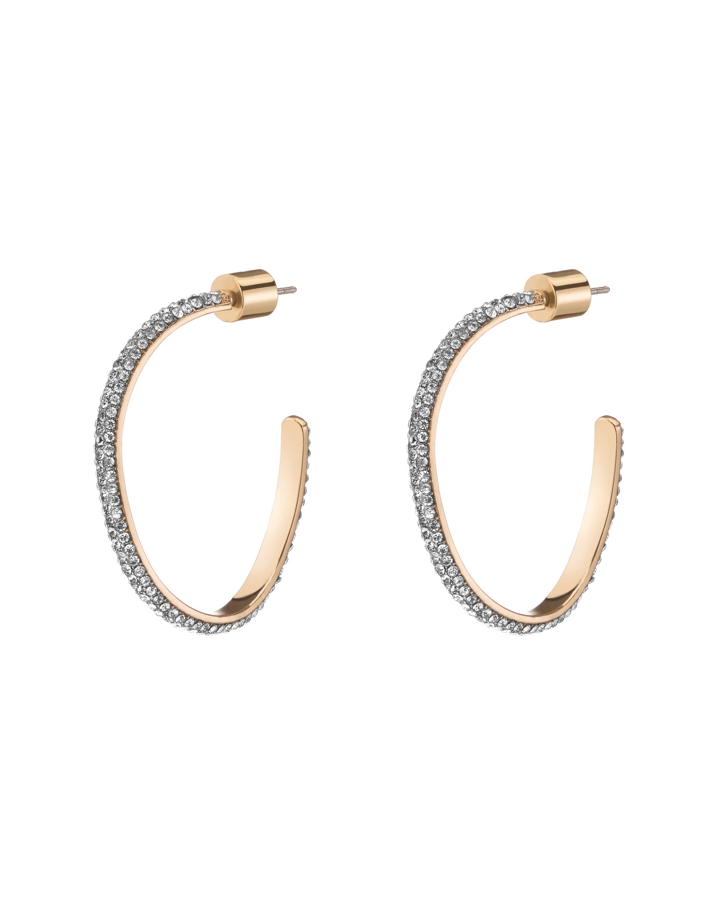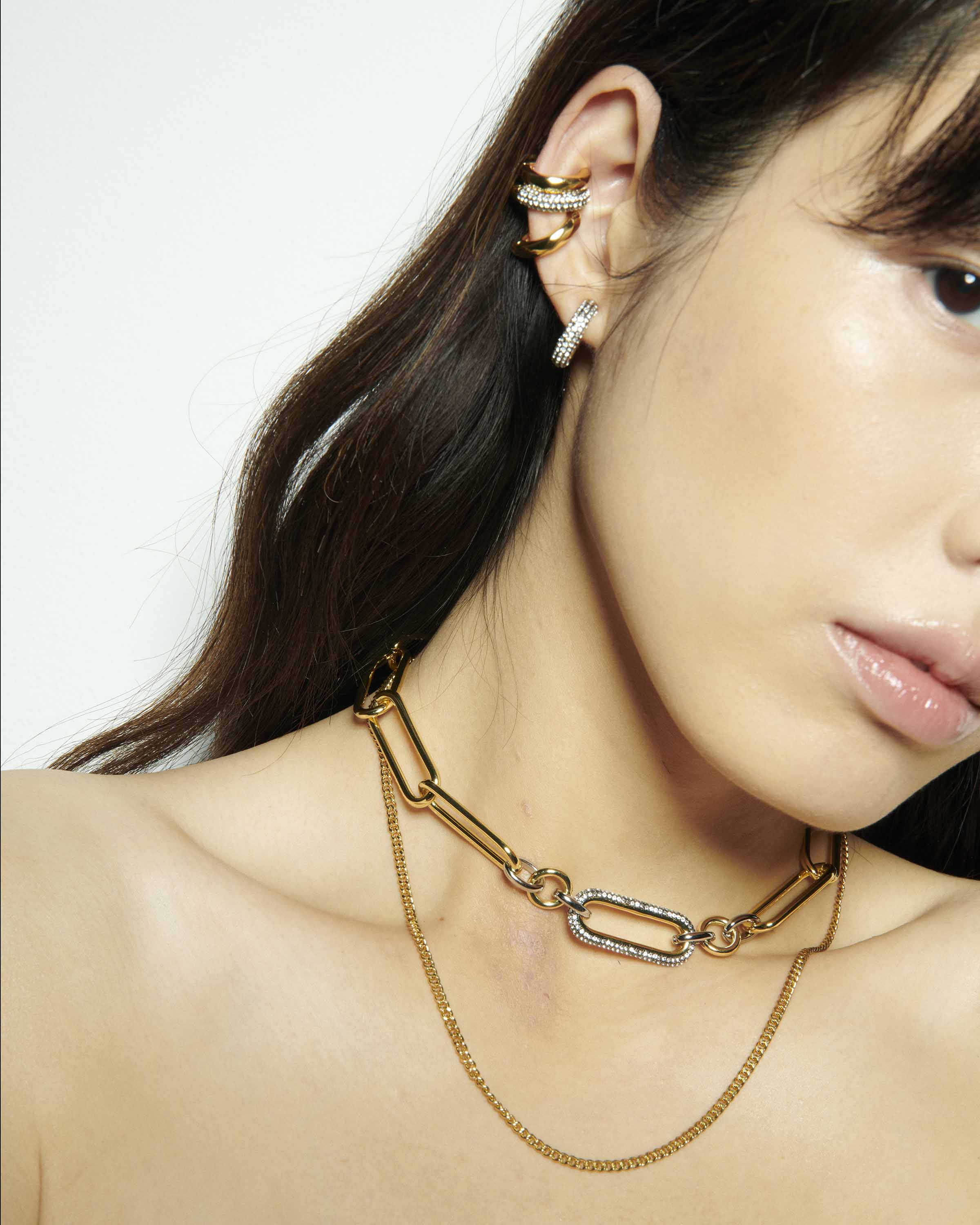 Our best-selling two tone Tina Hoops now with a pave finish. With their angular, unique design for everyday wear, these hoops feature stylish, bisecting shapes adding glam to any look.