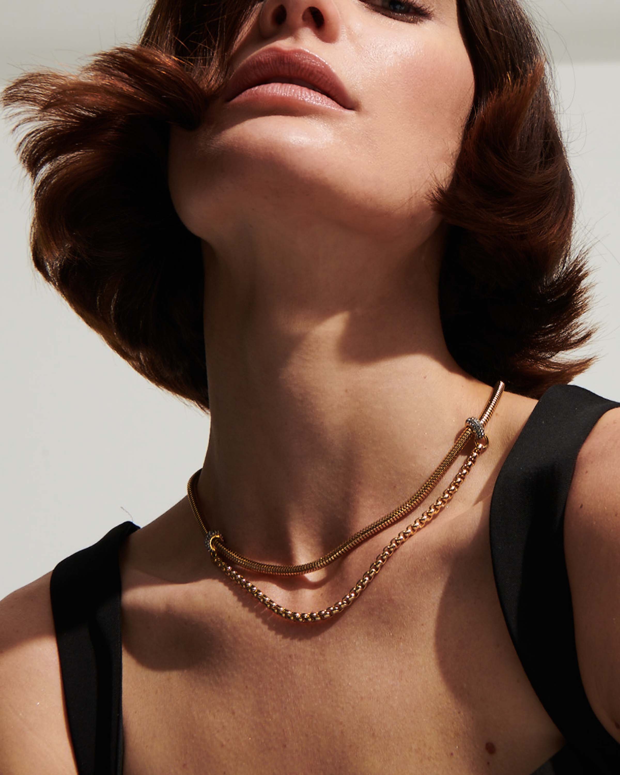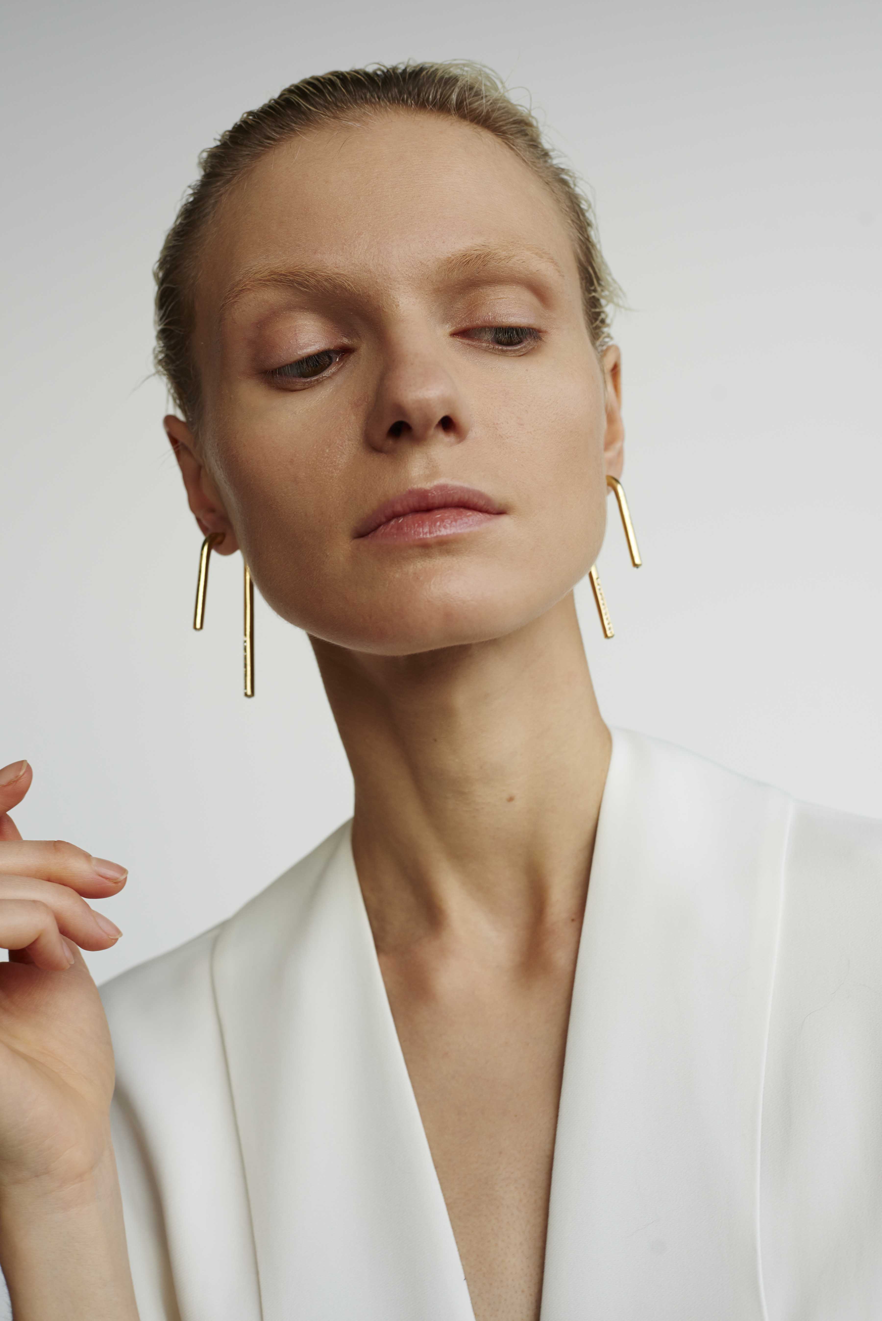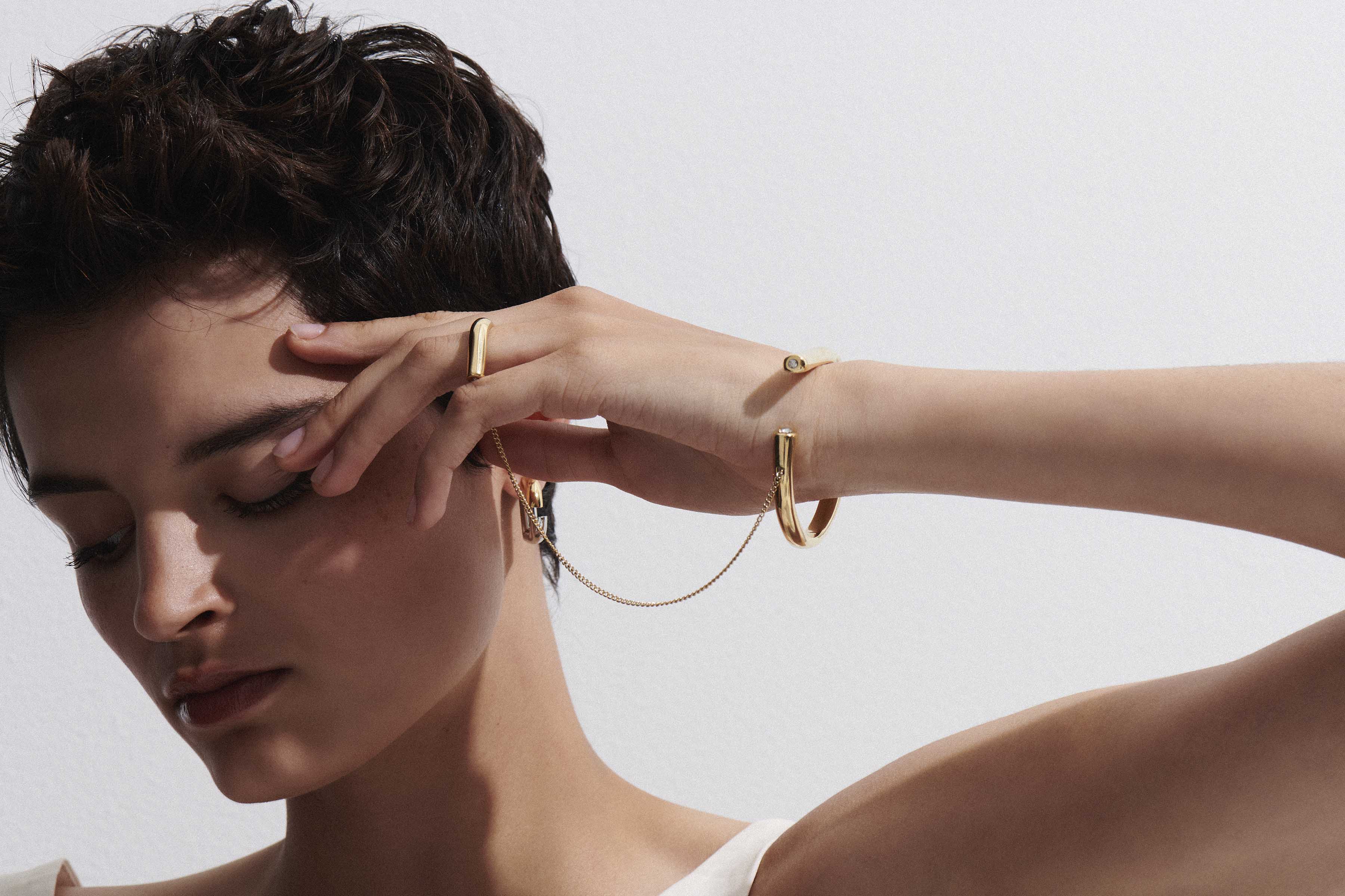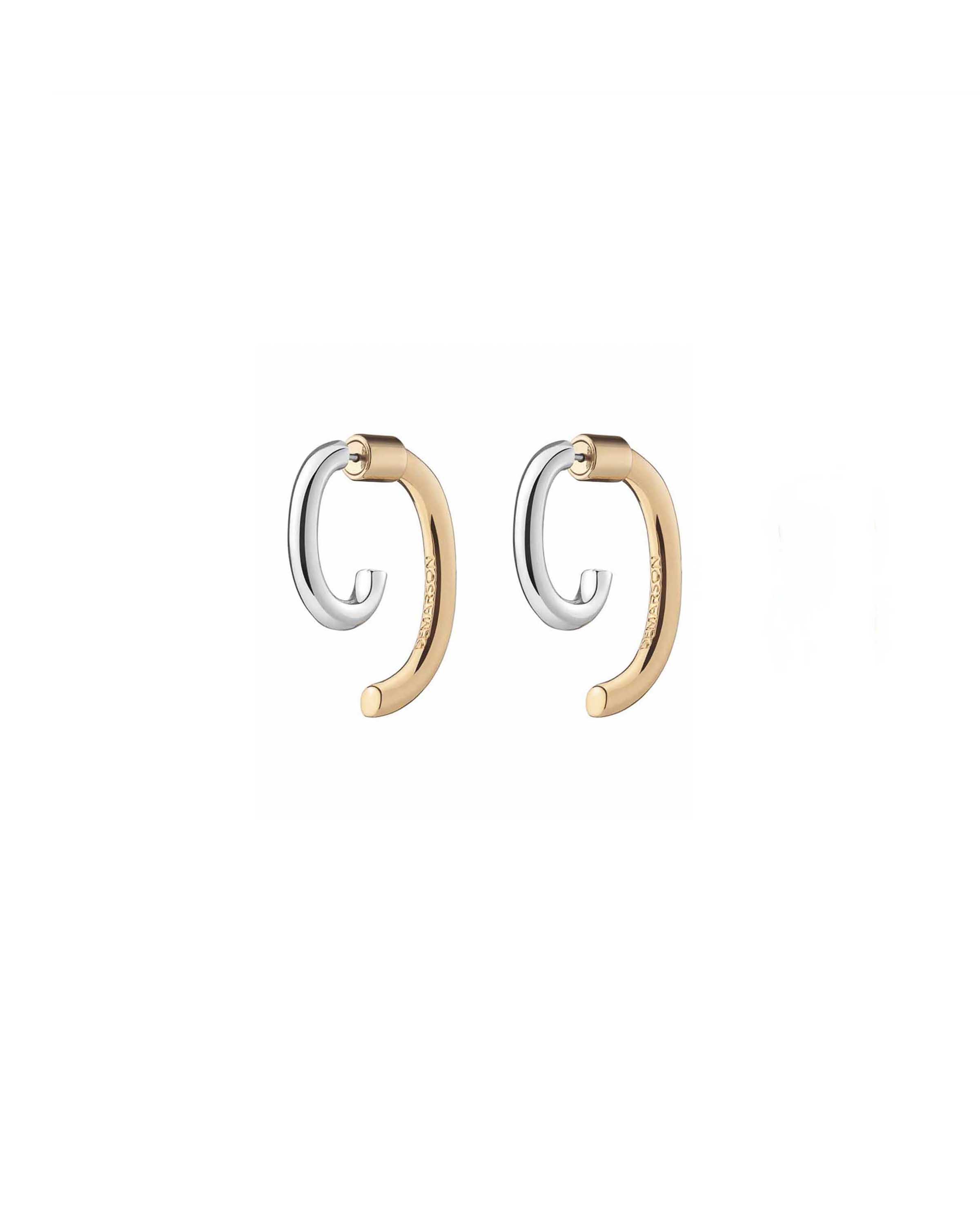 Our best-selling two tone Tina Hoops now with a pave finish. With their angular, unique design for everyday wear, these hoops feature stylish, bisecting shapes adding glam to any look.